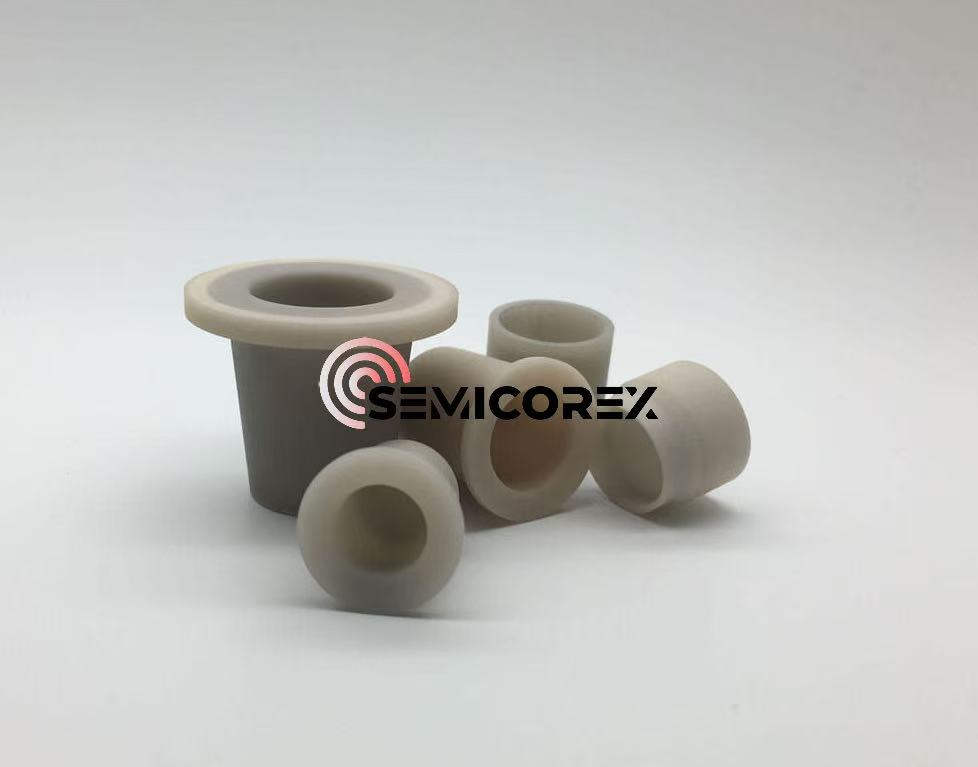 Les creusets en nitrure d'aluminium sont utilisés dans la synthèse de semi-conducteurs composés tels que l'arséniure de gallium (GaAs) pour éliminer les impuretés de Si dans les creusets en quartz et améliorer la pureté du produit. Ils peuvent également servir de substrats pour les radiateurs en céramique, les mandrins électrostatiques et d'autres composants, répondant parfaitement aux normes de haute température, de haute précision et d'isolation des équipements semi-conducteurs.