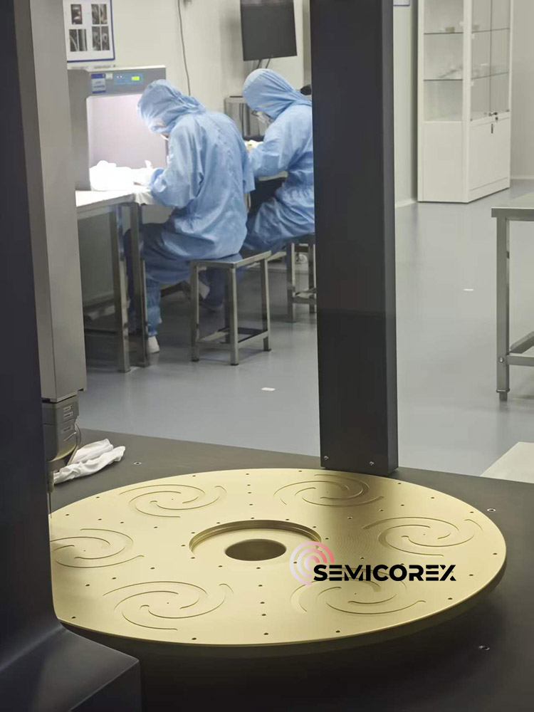 La configuration géométrique du suscepteur a été optimisée, y compris les canaux d'écoulement de gaz, les conceptions de poches et les caractéristiques de surface. Cela favorise un positionnement stable de la tranche sur le suscepteur pendant l'épitaxie et une meilleure régularité du chauffage, augmentant ainsi l'uniformité et la consistance de l'épaisseur d'épitaxie, ce qui se traduit par un rendement plus élevé de dispositifs fabriqués pour la fabrication de semi-conducteurs de puissance.