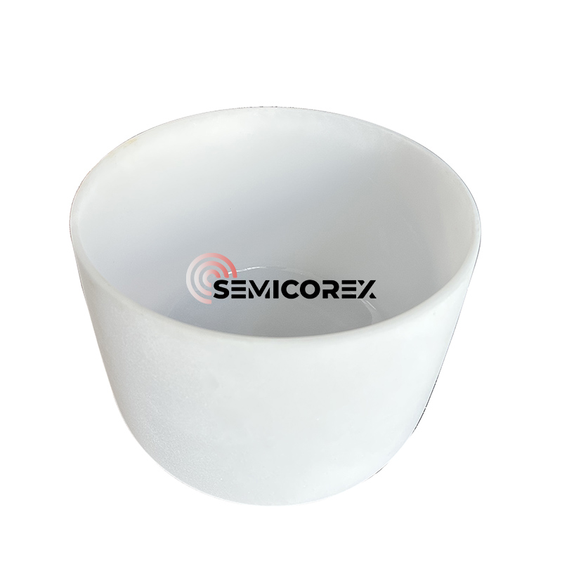 Les creusets à quartz fusionnés semi-orecorex sont des consommables précieux utilisés dans la fabrication de semi-conducteurs, avec une pureté importante, une stabilité thermique et une résistance mécanique dans des environnements de température extrêmes. Ces creusets sont fabriqués à partir de sable de silice de haute pureté qui est fusionné en utilisant une technique de fusion hautement contrôlée pour atteindre la densité la plus élevée disponible, avec un matériau principalement homogène avec des inclusions ou des bulles limitées dans sa structure qui est très reproductible pour les productions de reculations et de plaquettes en cristal. Ces creusets ont des niveaux de contamination ultra-bas, ce qui les rend idéaux pour les processus où la pureté des matériaux affecte directement le rendement et les performances de l'appareil.