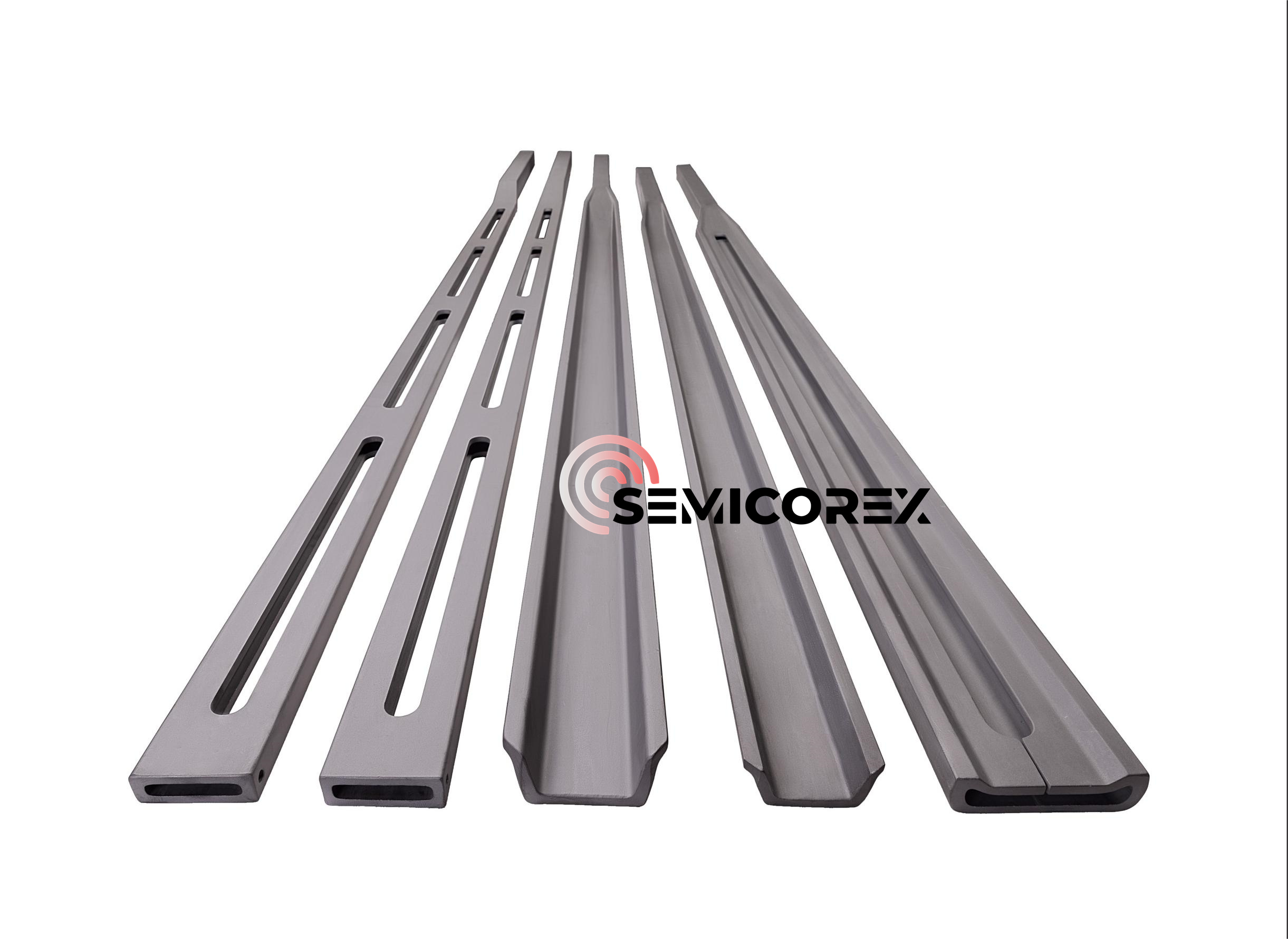Conçues pour être robustes et fiables, les palettes SiC sont des bras de type cantilever qui maintiennent des bateaux de plaquettes ou des piles de plaquettes. La palette supporte les tranches pendant leur insertion ou leur retrait de la chambre de traitement. Les matériaux conventionnels échouent à ces températures élevées par déformation, gauchissement ou dégradation chimique. La stabilité mécanique et l'intégrité structurelle du carbure de silicium permettent à la palette de survivre à plusieurs cycles thermiques sans perte de forme ou de fonction. Cette capacité est importante pour maintenir l'alignement du four, garantir que les tranches ne sont pas endommagées pendant le processus et minimiser les temps d'arrêt coûteux.